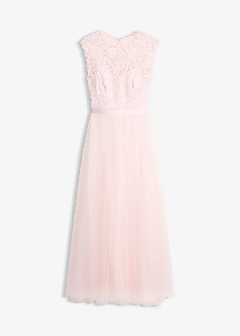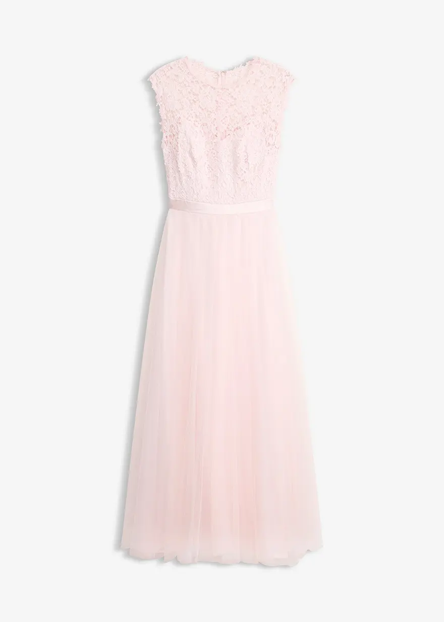 Abendkleid mit Spitze und Rock aus feinem Tüll