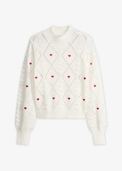 Pullover mit Lochmuster und Herzchenstickerei
