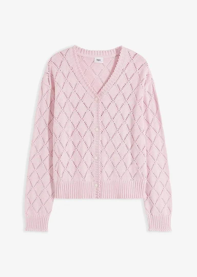 Stylische Ajour-Strickjacke mit V-Auschnitt