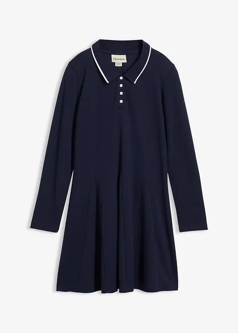 Langärmliges Shirtkleid für Mädchen mit Kragen aus reiner Bio-Baumwolle