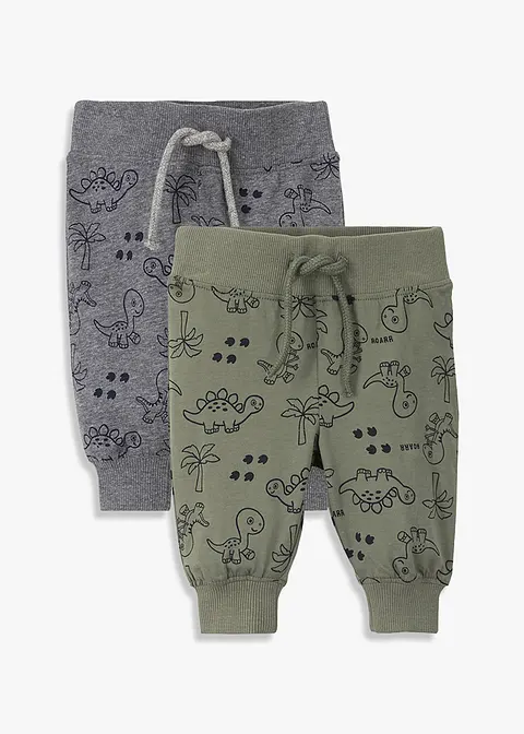 Süße Baby Jerseyhose im praktischen 2er-Pack mit bequemem, elastischem Bund und Dino-Print. Die weiche Bio-Baumwollqualität bietet tollen Tragekomfort.