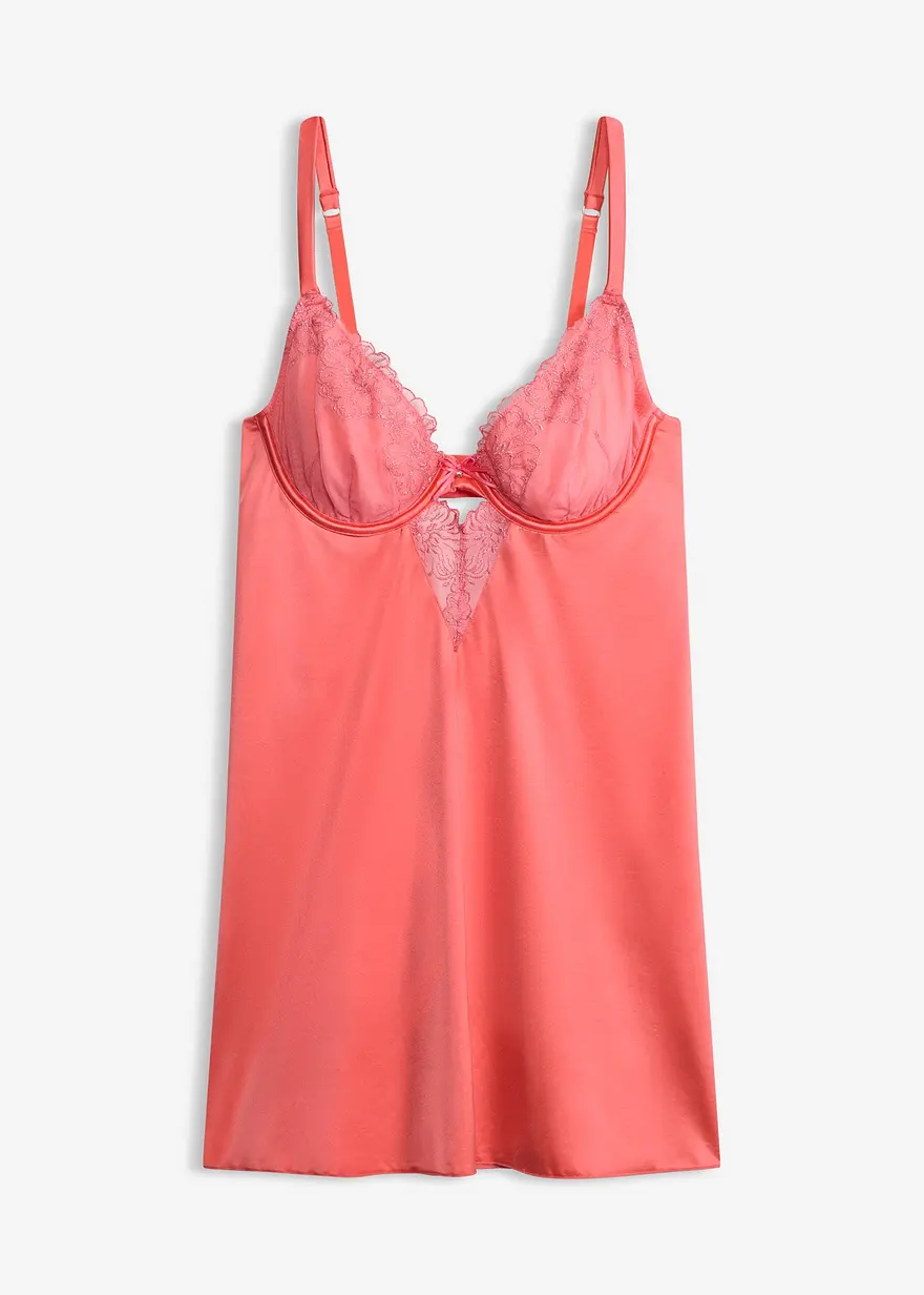 Babydoll aus glänzendem Material und floraler Glitzerstickerei