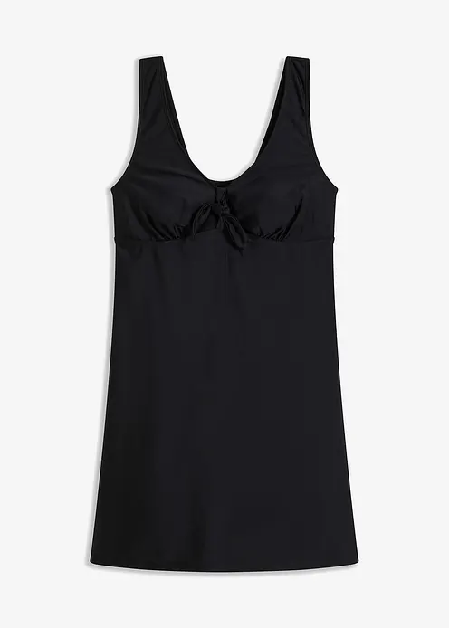 Ein Schwimmanzug in Kleid-Optik und mit integriertem Badeanzug und längerem Bein. Das Badekleid ist mit einem Brustfutter, integrierte Softcups und einem elastischen Unterbrustgummi ausgestattet.
