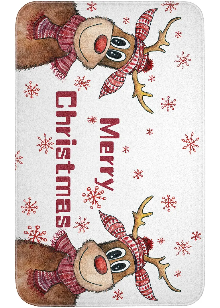 Bedruckte Badgarnitur mit weihnachtlichem Druck, superweich unter den Füßen, schnell trocknend, mit Memory Schaum. Extrem saugfähig.