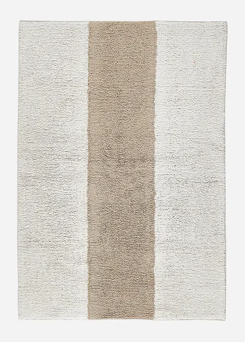 Getuftete Badematte, waschbar 30°C, Rückseite rutschhemmend, Fußbodenheizung geeignet.