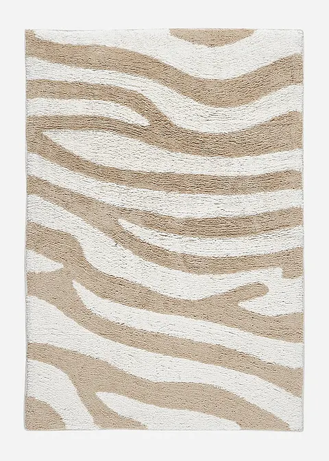 Getuftete Badematte, waschbar 30°C, Rückseite rutschhemmend, Fußbodenheizung geeignet.