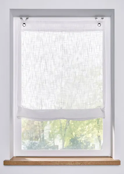 Das schöne Strukturgewebe macht die natürliche Optik dieses Bändchenrollos aus. Mit der dekorativen Hakenaufhängung ist es im Nu über Fenster oder Türen angebracht und lässt sich mit den kleinen Bändchen auf die gewünschte Höhe stufenlos einstellen. Es ist halbtransparent und bietet Sichtschutz verdunkelt jedoch nicht den Raum.
