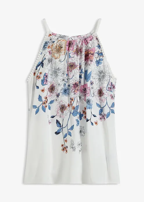 Sommerliches Blusentop. Das Neckholder Top ist bedruckt.