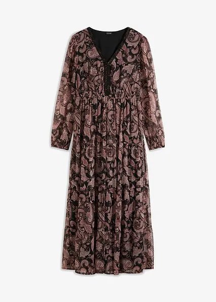 bedrucktes Maxikleid mit Spitze am Ausschnitt