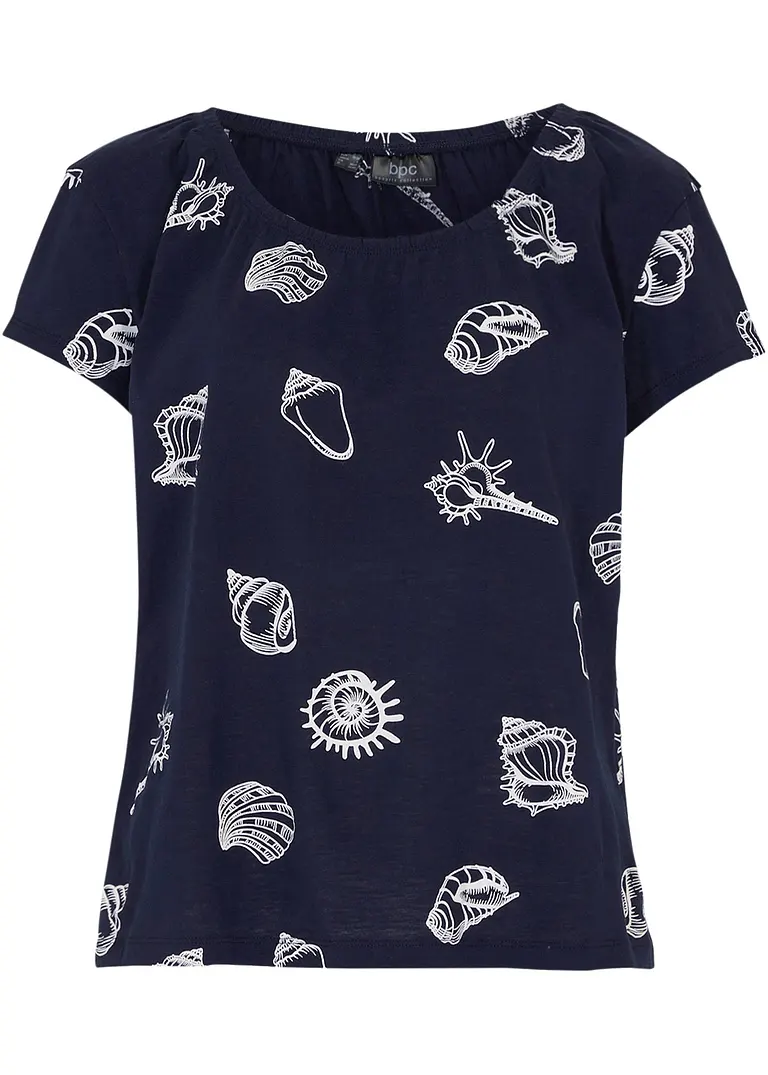Bedrucktes Shirt mit Rundhalsausschnitt aus Bio-Baumwolle in blau von vorne - bonprix