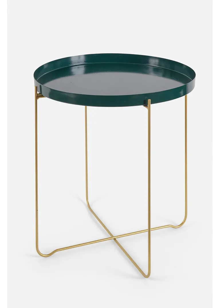 Der Beistelltisch vereint modernes Design mit praktischer Funktionalität und ist eine stilvolle Ergänzung für jeden Wohnraum. Mit seiner runden Tischplatte in einem eleganten Grünton und dem goldenen Gestell setzt er ansprechende Akzente und wirkt zugleich zeitgemäß und elegant. Die großzügige Ablagefläche bietet ausreichend Platz für Getränke, Bücher oder dekorative Elemente, während die schlanken Beine für eine leichte Optik sorgen. Ideal für das Wohnzimmer, Schlafzimmer oder als praktische Ablage neben dem Sessel, bringt dieser Beistelltisch sowohl Stil als auch Funktion in die Einrichtung. Die Kombination aus hochwertigen Materialien und durchdachtem Design macht ihn zu einem vielseitigen Möbelstück, das in jedem Raum zum Einsatz kommen kann.