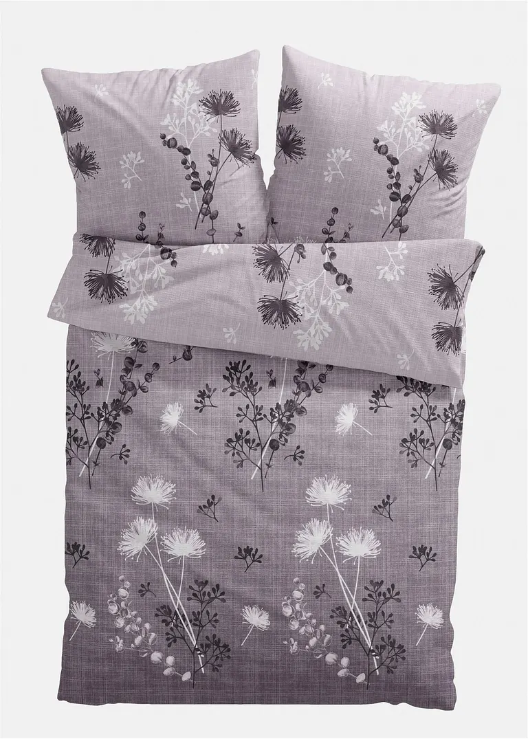 Bettwäsche mit Blumen Design in grau von vorne - bonprix