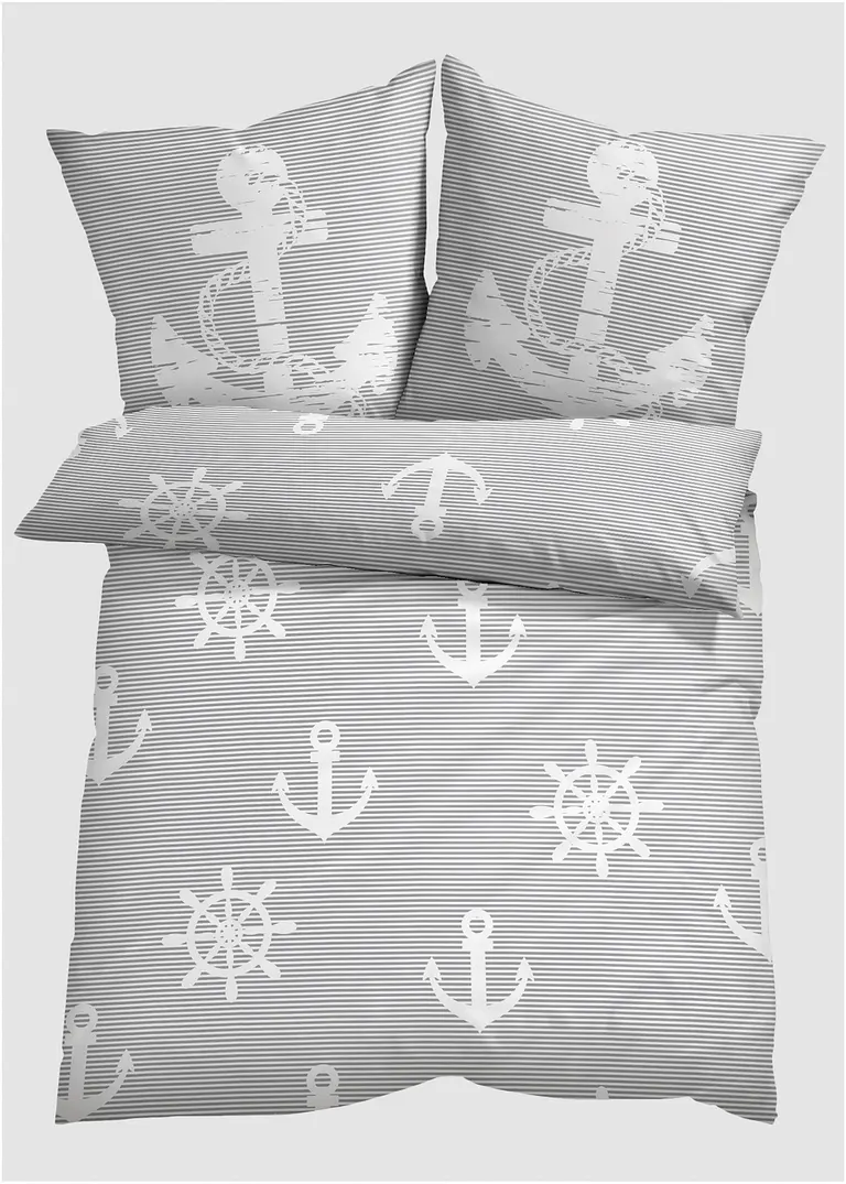 Bedruckte Bettwäsche mit Maritim-Motiv.