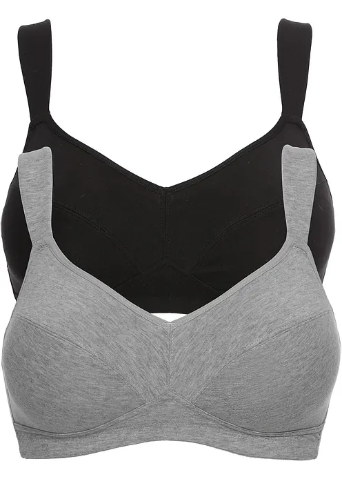 BH ohne Bügel mit Bio-Baumwolle (2er Pack) in schwarz von vorne - bonprix