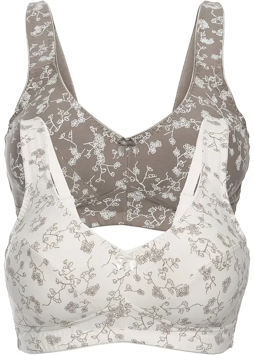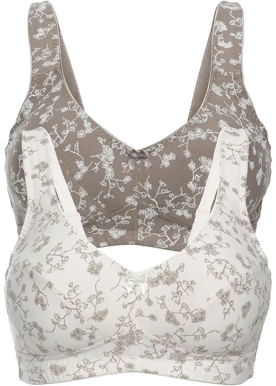 Der BH ohne Bügel bietet mit seiner schönen Bio-Baumwollqualität angenehmen Tragekomfort. Das weiche Material schmiegt sich perfekt an und die leicht gepolsterten Träger entlasten die Schulterpartie.Im attraktiven Doppelpack sind zwei BHs ohne Bügel aus der bpc collection mit einem verspielten Blumendruck enthalten. Dieser ansprechende BH vereint bequemes Tragegefühl und modisches Design.
