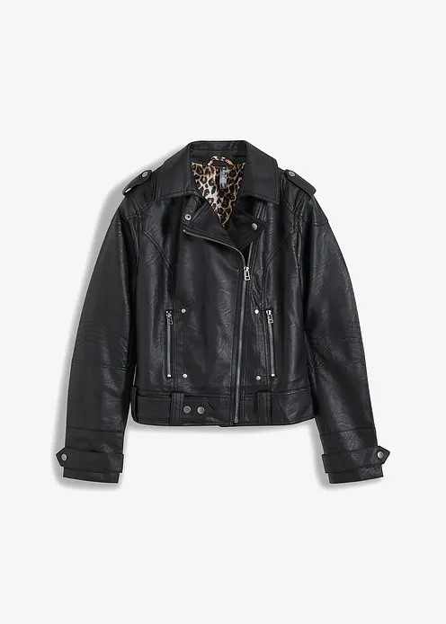 Lässige Jacke aus Lederimitat mit Innenfutter im Leomuster