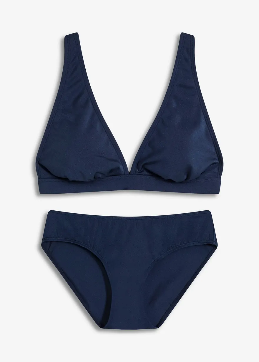 Bikini (2-tlg.Set) aus glänzendem Material in blau von vorne - bonprix