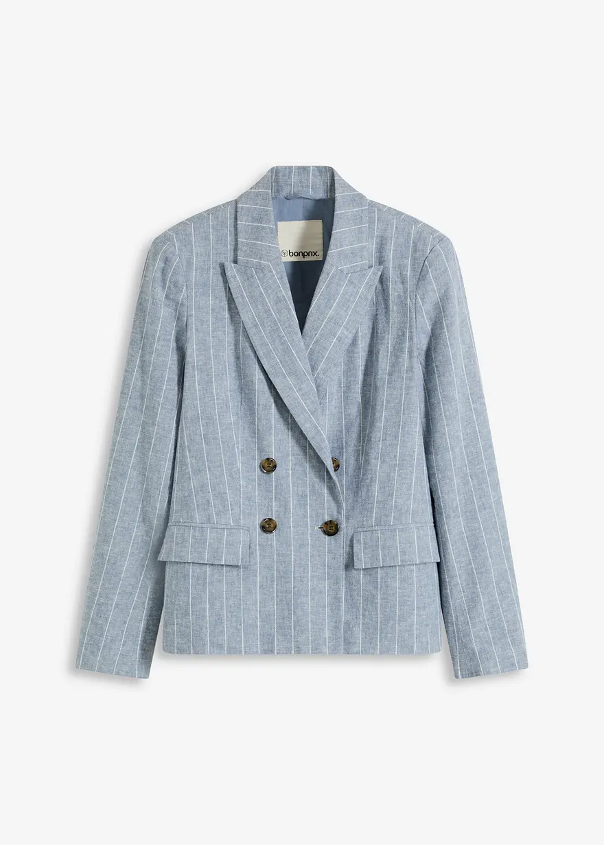 Blazer mit Leinenanteil in blau von vorne - bonprix