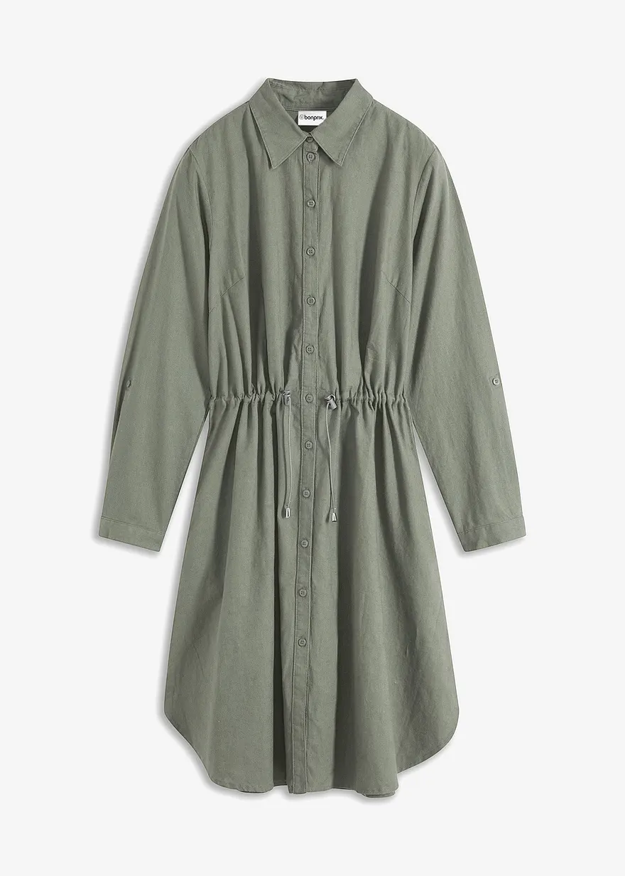 Hemdblusenkleid aus Leinen-Baumwoll-Mix