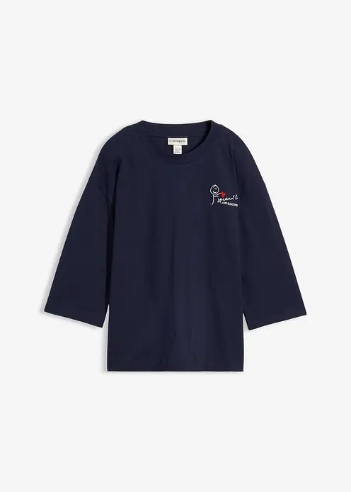 Weit geschnittenes Kurzarmshirt mit überschnittener Schulter. Ein Rundhalsmodell aus reiner Baumwolle mit Seitenschlitzen am Saum.