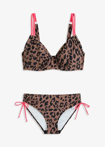 Bügel-Bikini im Leo-Design mit neonfarbenen Details
