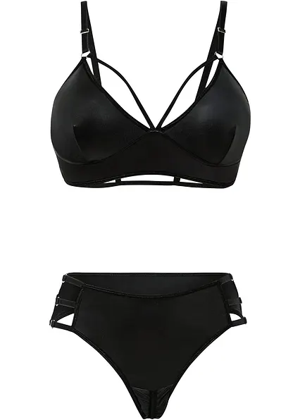 Bustier und String ouvert mit Wetlook (2-tlg.Set)