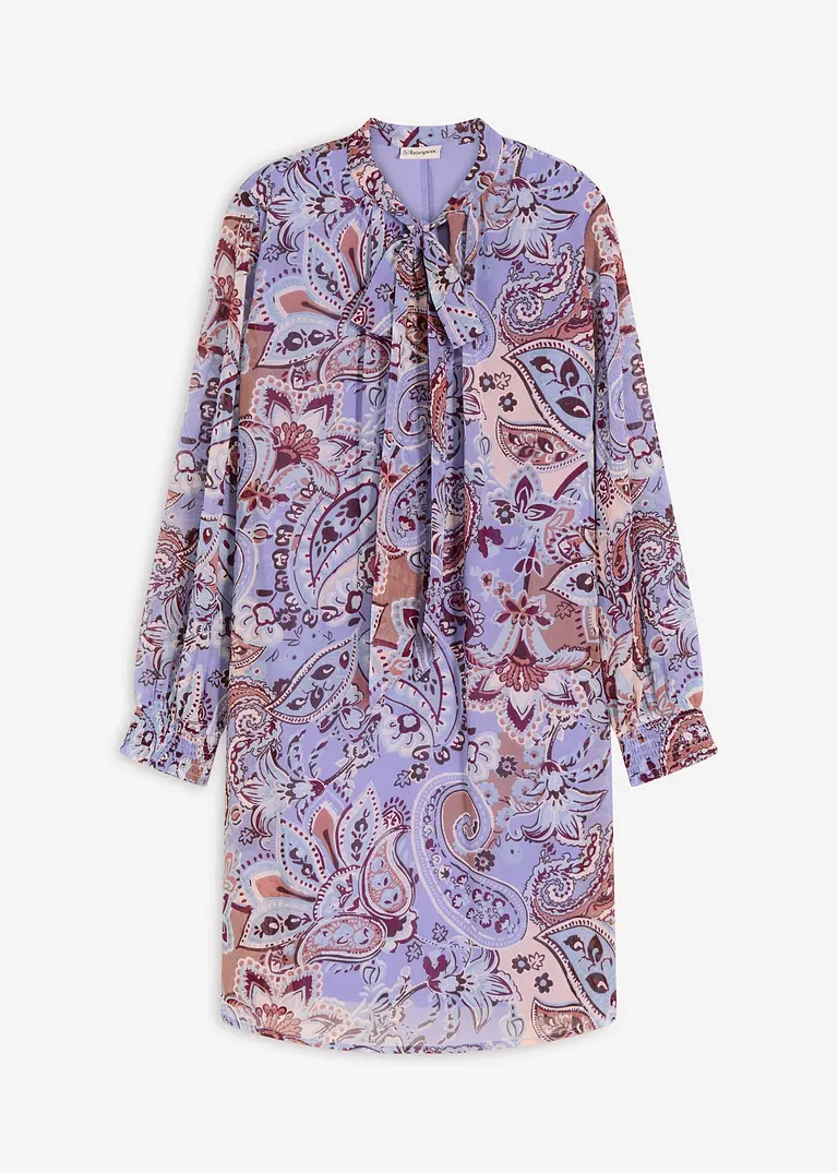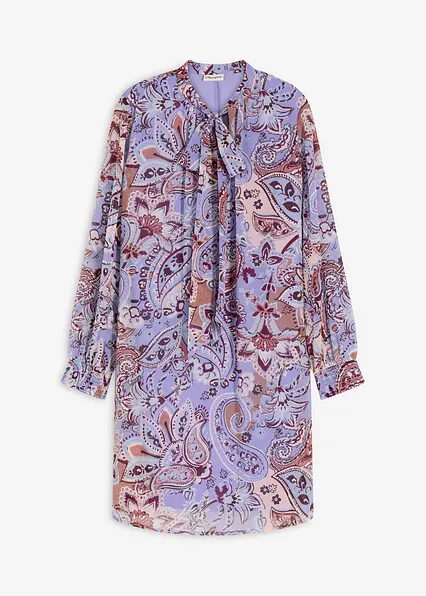 modisch bedrucktes Chiffon-Tunika-Kleid mit Schluppenkragen