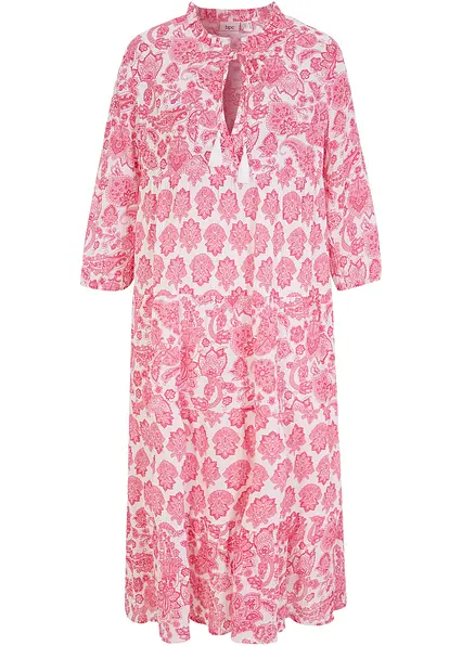 Crincle-Web-Baumwollmidikleid mit Taschen und 3/4- Arm