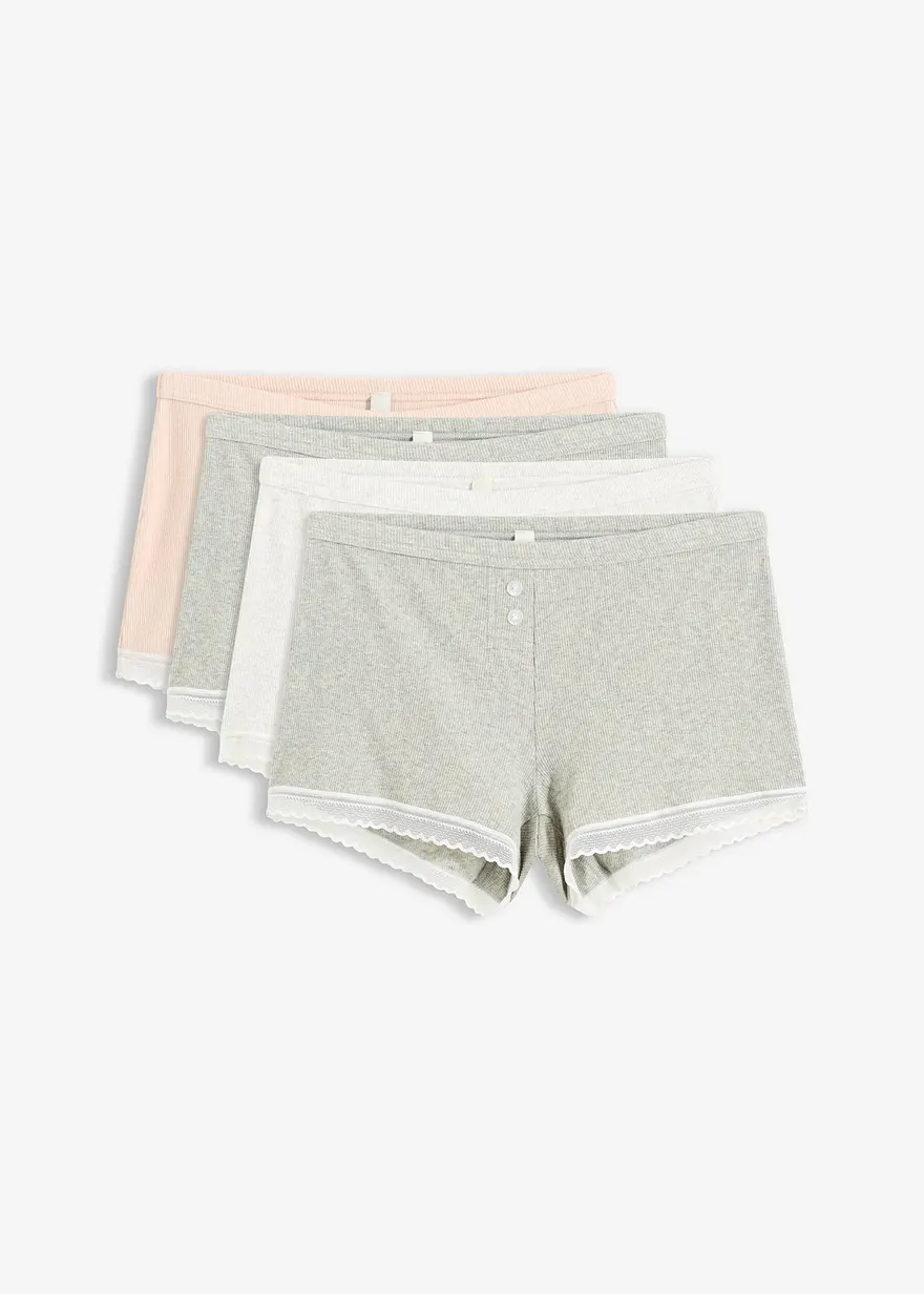 Damen Boxergerippt mit Spitze (4er Pack)