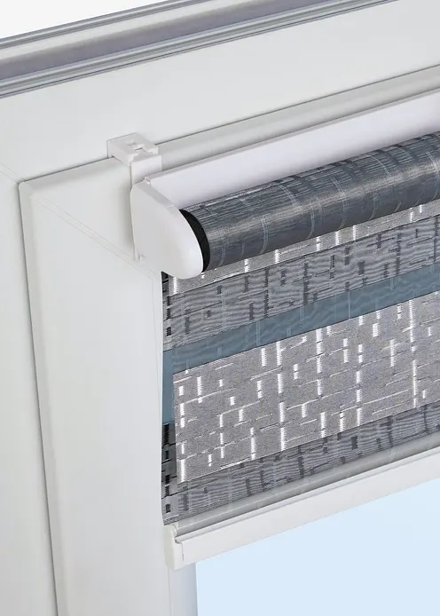 Das Doppelrollo in Jacquard Qualität ist eine moderne Fensterdekoration mit praktischem Effekt, denn es kann individuell eingestellt werden von Durchsicht, bis halbtransparent bis transparent.