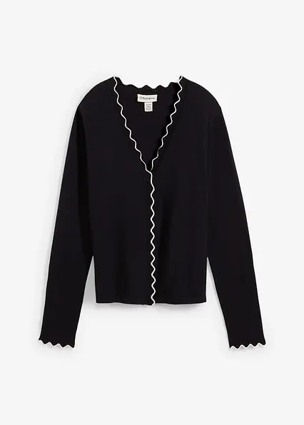 schöne Feinstrickjacke mit Seidenanteil und schmückender Wellenkante