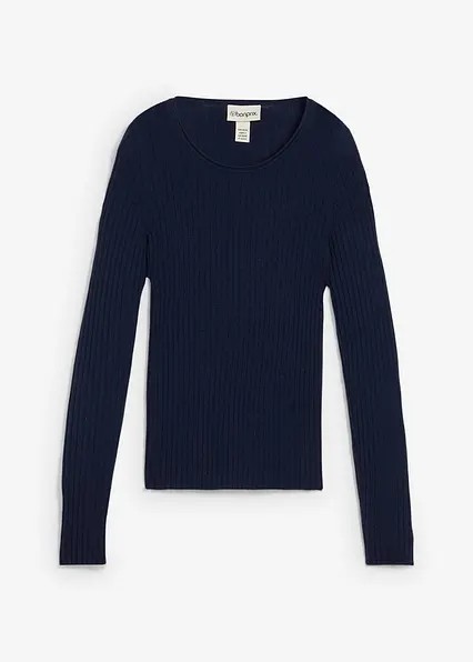 gerippter Rundhalspullover aus reiner Merinowolle in Premium Qualität