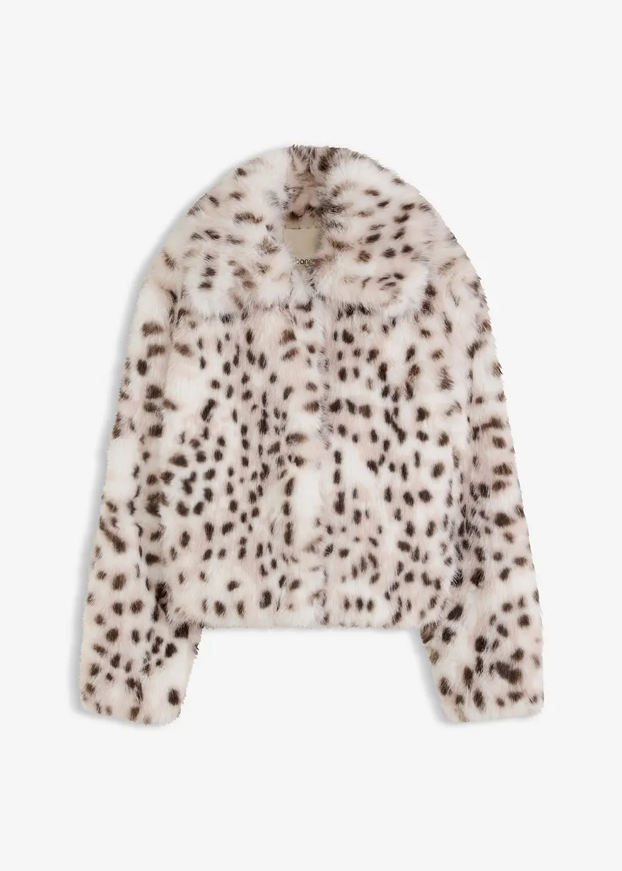 modische Fellimitat-Jacke mit Revers-Kragen und Druckknopf-Verschluss vorne.