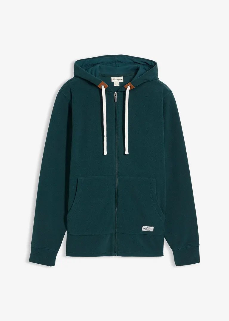 Fleecejacke mit Kapuze und aufgesetzten Taschen