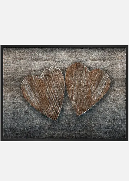 Dekorativ und herzig: die bedruckte Fußmatte mit Holzherzmotiv