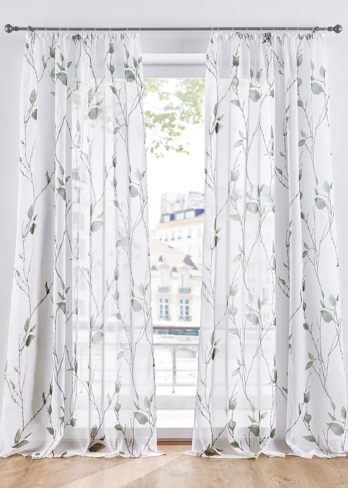 Wie ein Aquarell wirkt der florale Druck auf unserer transparenten Gardine. Die zarten Farben und die Transparenz der Gardine lassen das Zimmer hell und freundlich erscheinen. Sie ist aus pflegeleichtem Voile-Gewebe.