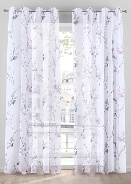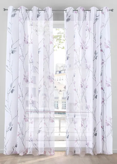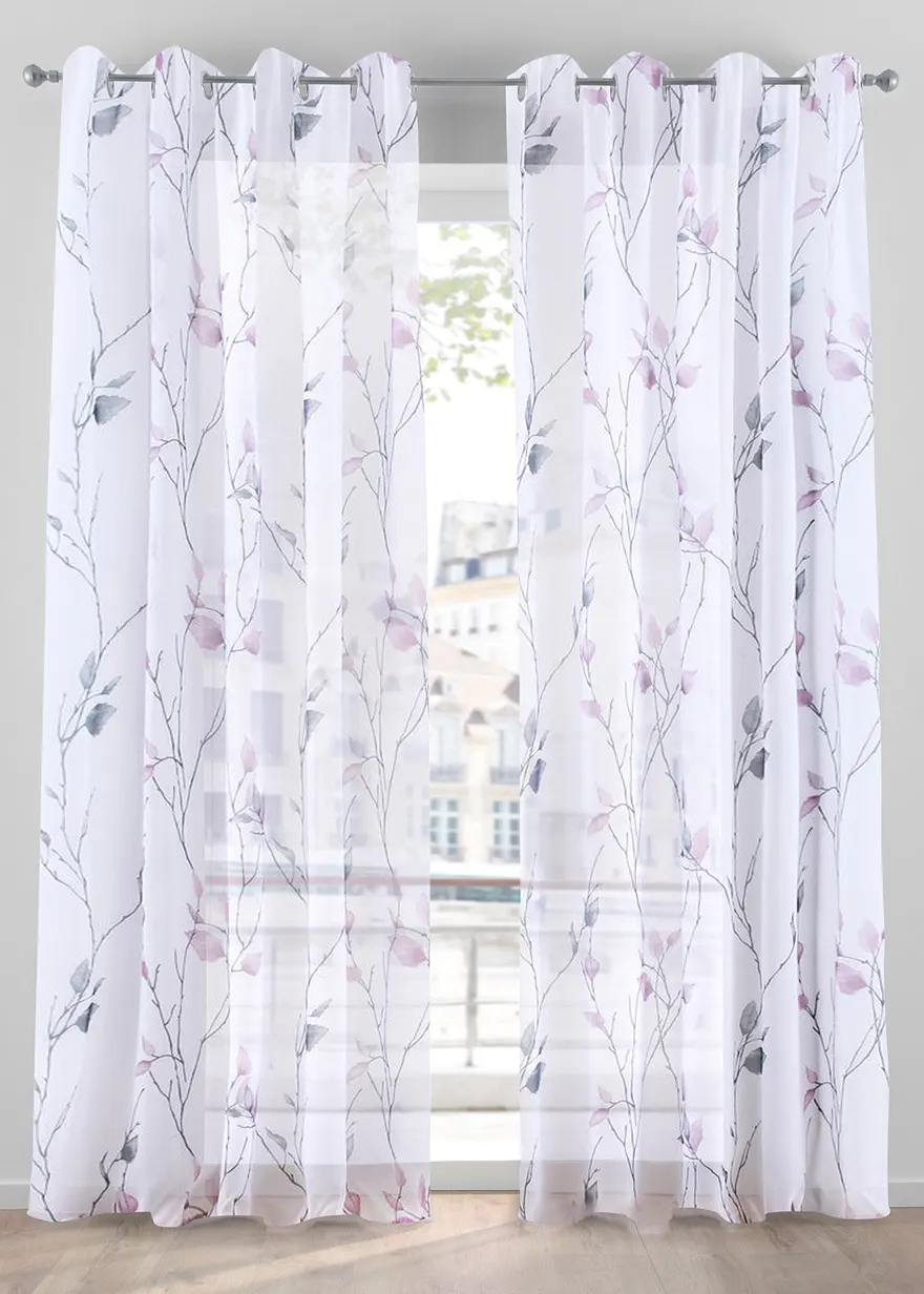 Wie ein Aquarell wirkt der florale Druck auf unserer transparenten Gardine. Die zarten Farben und die Transparenz der Gardine lassen das Zimmer hell und freundlich erscheinen. Sie ist aus pflegeleichtem Voile-Gewebe.
