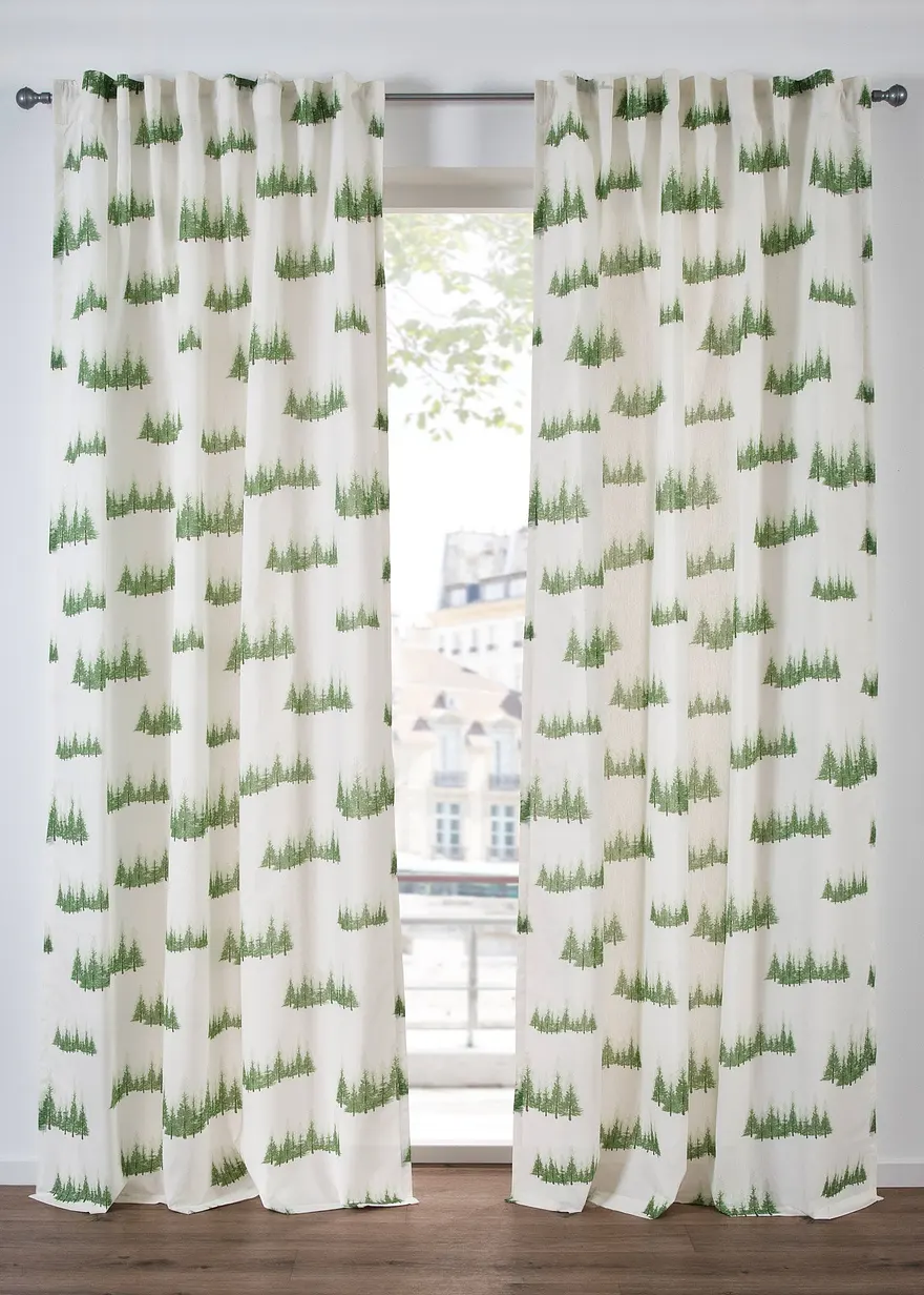 Gardine mit bedruckten Tannenbäumen (1er Pack)