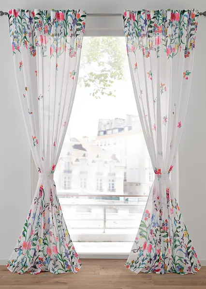 Gardinen mit Blumendruck inkl. Raffhalter (2er Pack)