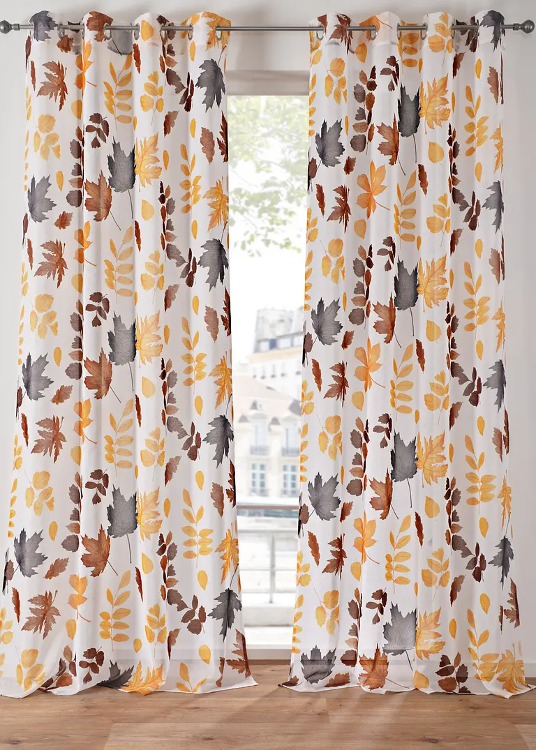 Schlicht und mit ansprechendem Herbstdesign , damit überzeugt diese schöne Fertiggardine.