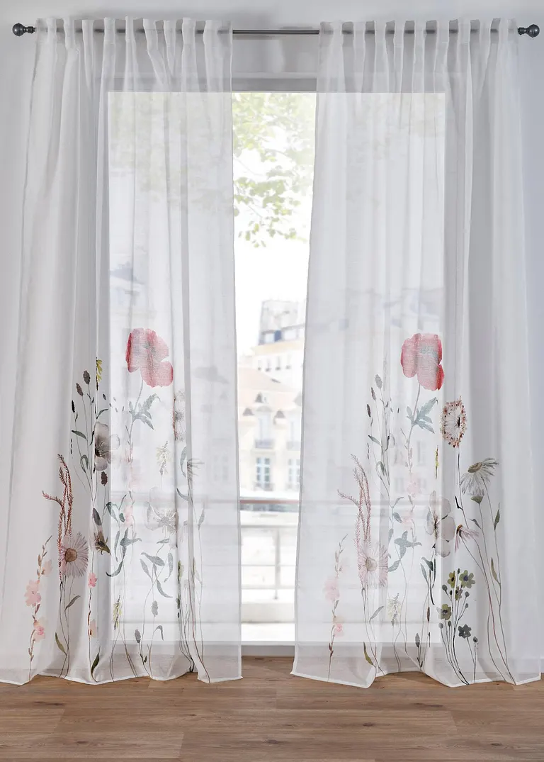 Gardine mit recyceltem Polyester mit Blumen Druck (1er Pack)