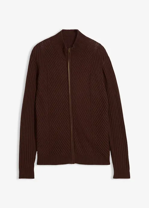 Moderne Strickjacke im Regular Fit mit Stehkragen und markantem Metallreißverschluss