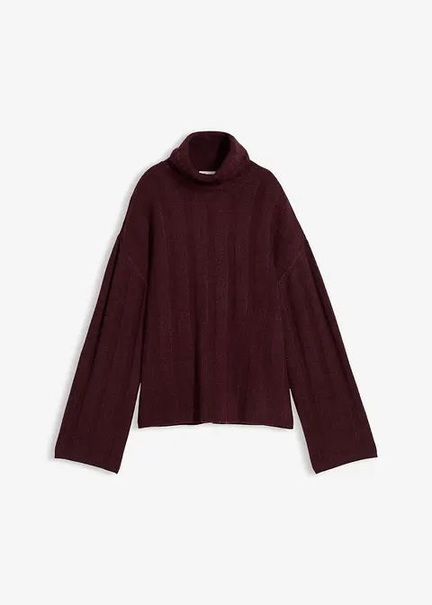 Ripp-Pullover mit Rollkragen und Seitenschlitzen