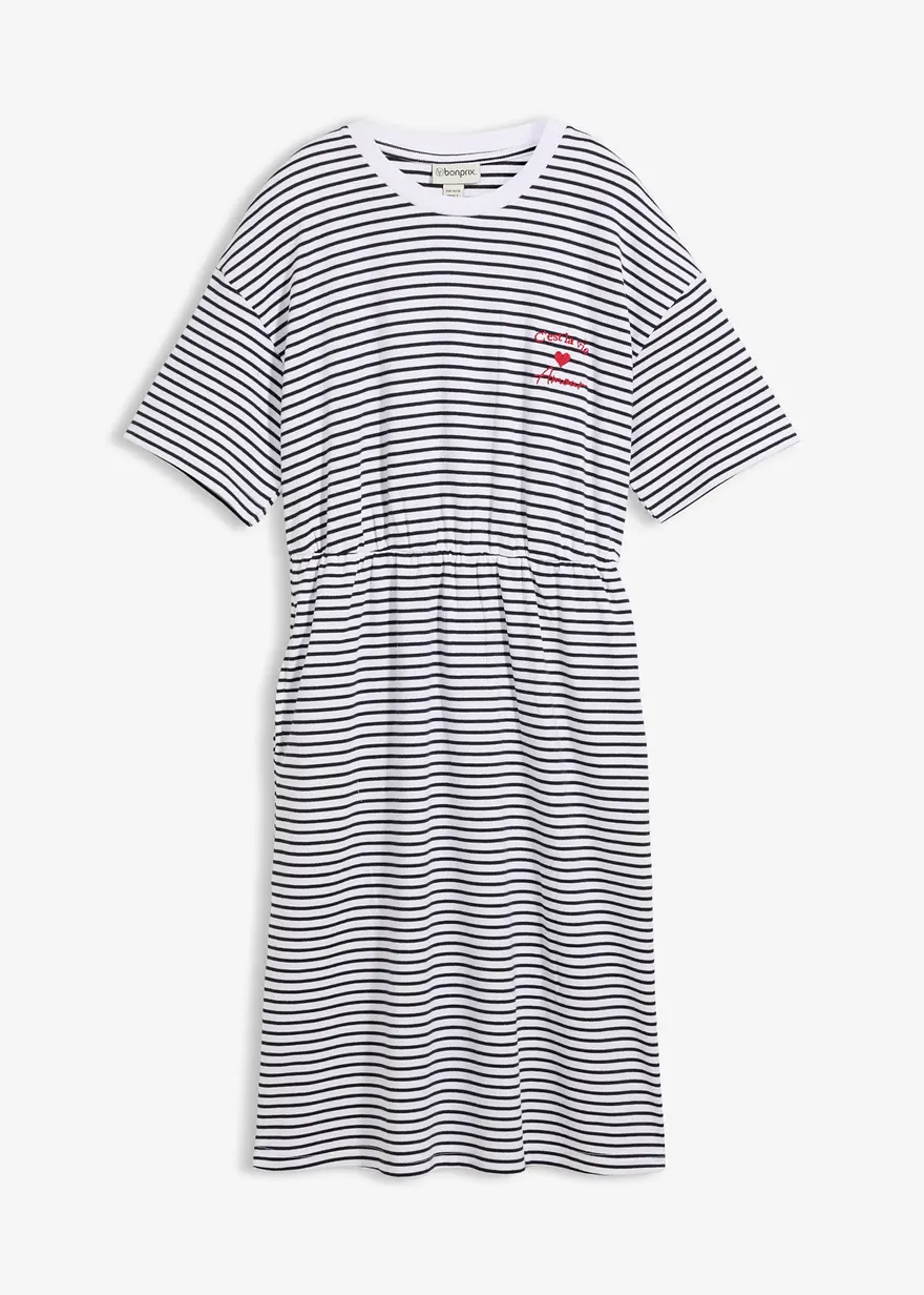 Gestreiftes Jerseykleid mit Stickerei