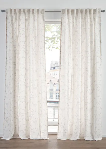 Diese dezent gemusterte Gardine bietet Dir einen frischen und modernen Look für Deine Fenster. Sie ist halbtransparent und auch in Überlänge erhältlich.