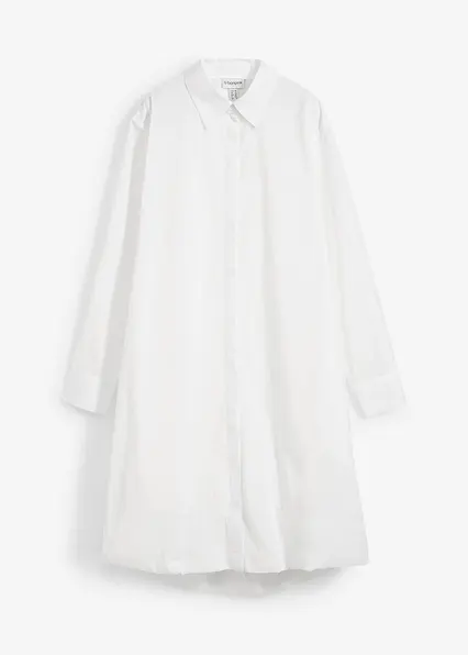 Hemdblusenkleid mit Ballonsaum aus reiner Baumwolle