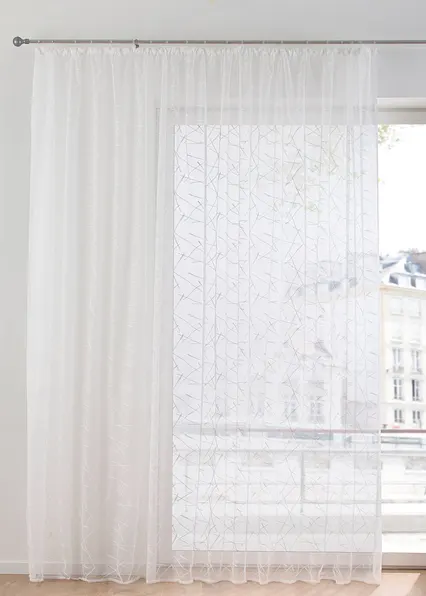 Die Jacquard-Gardine bietet Dir einen leichten Sichtschutz. Sie ist in vielen Maßen erhältlich und somit für viele Fenstergrößen geeignet. Wir empfehlen hier die 3-fache Fensterbreite zu bestellen damit Du sie optimal dekorieren kannst. Sie hat ein modernes Design und ist im vielseitig einsetzbaren weiß gehalten.