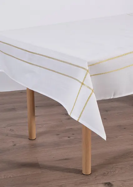 Elegante Tischdecke für Deine festliche Tafel. Aus hochwertigem Gewebe gefertigt und mit feinem goldenem Glanzgarn.