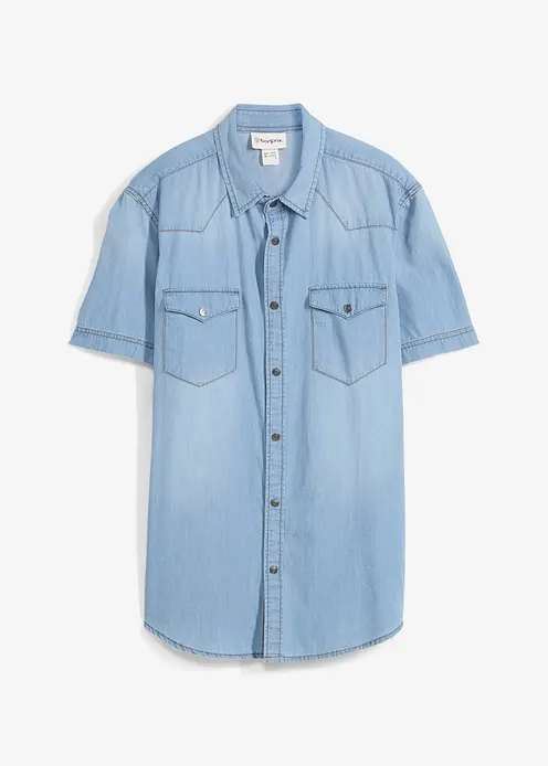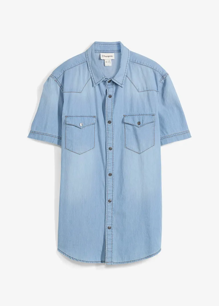 Jeanshemd, Kurzarm aus reiner Bio-Baumwolle, Slim Fit