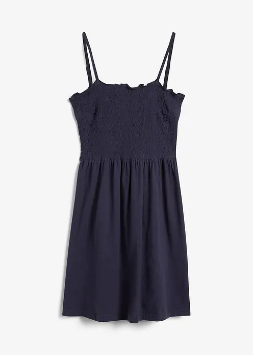 Bequemes Baummwollshirtkleid mit hübschem Smock und verstellbaren Trägern